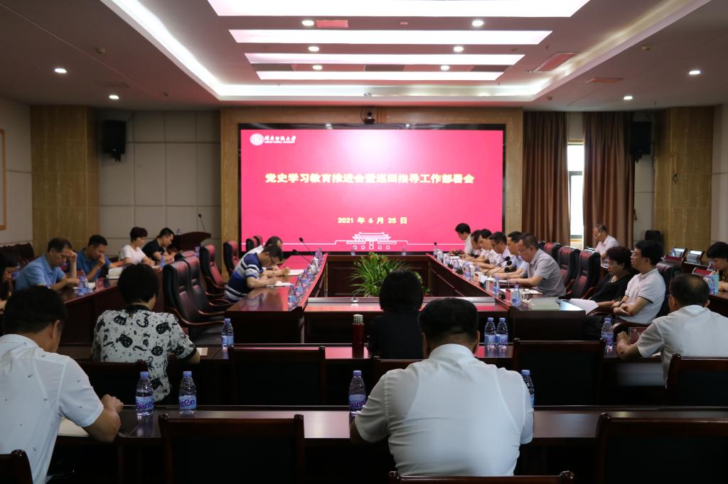 会上,校党委副书记肖庆伟介绍了学校党史学习教育开展的情况,并部署下阶段重点工作。肖庆伟指出,自党史学习教育启动以来,学校紧扣高校立德树人根本任务,牢牢把握“学党史、悟思想、办实事、开新局”总要求,坚持重创新、显特色、强实效,扎实推进党史学习教育走深走实,取得了积极成效。下阶段,要持续抓好理论学习,用好潜心自学、集体研学、领导带学、典型导学、巡听评学等“五学”形式,推动党史学习入脑入心;要进一步强化教职工党员、离退休党员、流动党员等不同群体的学习教育和分类指导,加强师德师风建设;要紧密结合庆祝建党100周年活动,持续深化党史学习教育,重点做好习近平总书记在中国共产党成立100周年庆祝大会上的重要讲话精神的学习、宣传、贯彻;要将党史学习教育与推进“三全”育人工作相结合,与“四史”宣传教育相结合,与“三再”活动相结合,深入开展“我为师生群众办实事”实践活动,推动党史学习教育见行见效。
