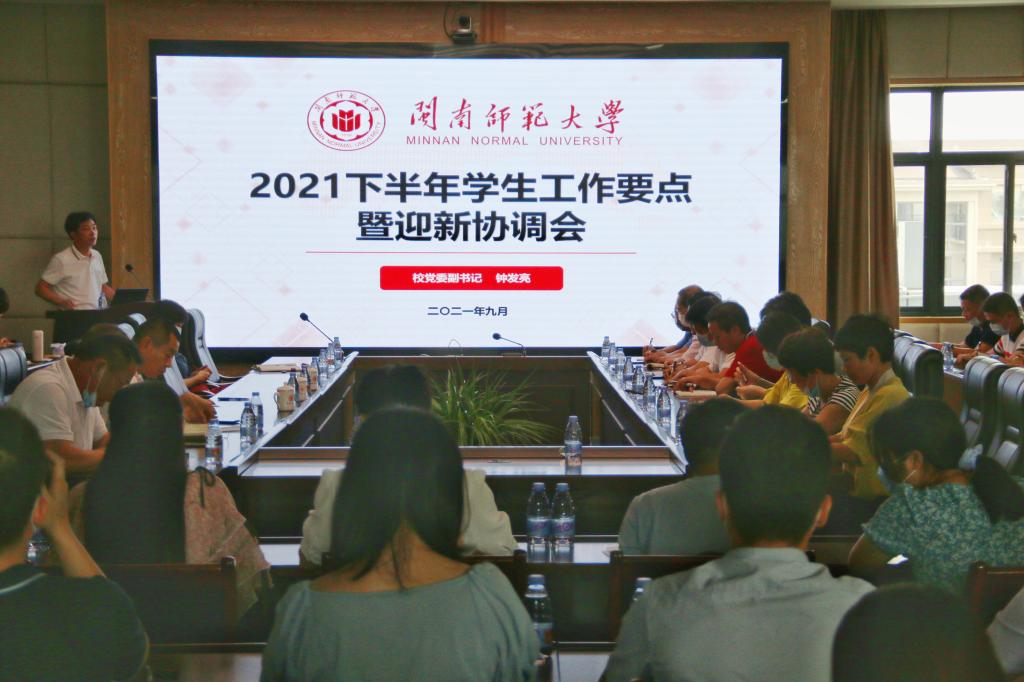 9月2日上午,登录入口2021年学生工作部署暨迎新工作协调会在科信楼1607会议室召开。校党委副书记钟发亮出席会议,学校相关部门负责人,各学院党委书记、副书记及全体新生辅导员参加会议。会议由钟发亮主持。