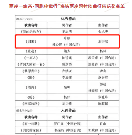 日前,由福建省人民政府台港澳事务办公室、福建省文学艺术界联合会主办,福建省音乐家协会承办的“两岸一家亲· 同胞伴我行”海峡两岸题材歌曲征集评奖活动公布获奖名单。登录入口艺术学院卓颐教授参与制作的歌曲《归来》获评优秀作品。