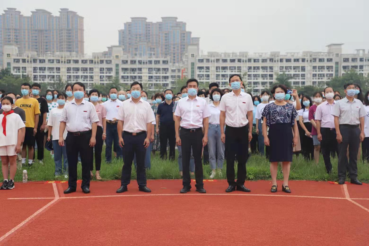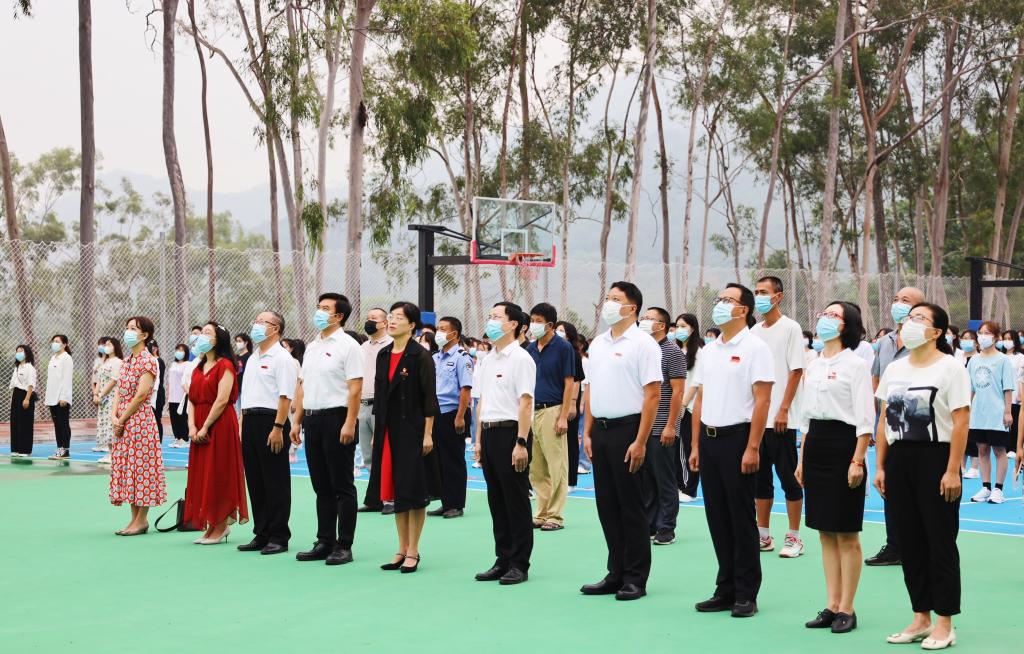 为认真学习贯彻习近平总书记在庆祝中国共产党成立100周年大会上的重要讲话精神,加强新时代爱国主义教育,激发广大师生的爱党爱国爱校热情,10月1日上午,登录入口在北江滨校区和圆山校区同步举行庄严的升国旗仪式,热烈庆祝中华人民共和国成立72周年。吴彬镪、李顺兴、何绍福、蒋一婷、林致远、张龙海等在家校领导,机关党支部书记,各学院党委书记、院长、党委副书记,学校师生代表、离退休教师代表等参加升旗仪式。仪式由学校办公室主任罗炎成主持。