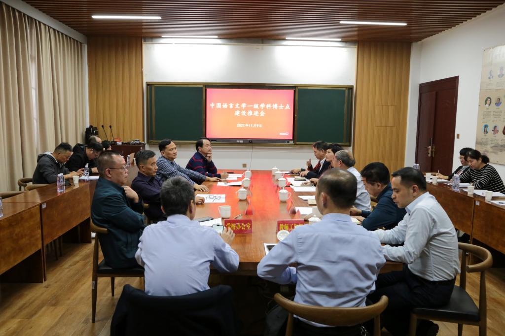 校领导听取了文学院关于中国语言文学一级学科博士学位授权点建设工作情况的汇报,对学院学科与学位点建设工作取得的成就给予了高度评价,对下一步学位点建设规划和工作重点提出要求。