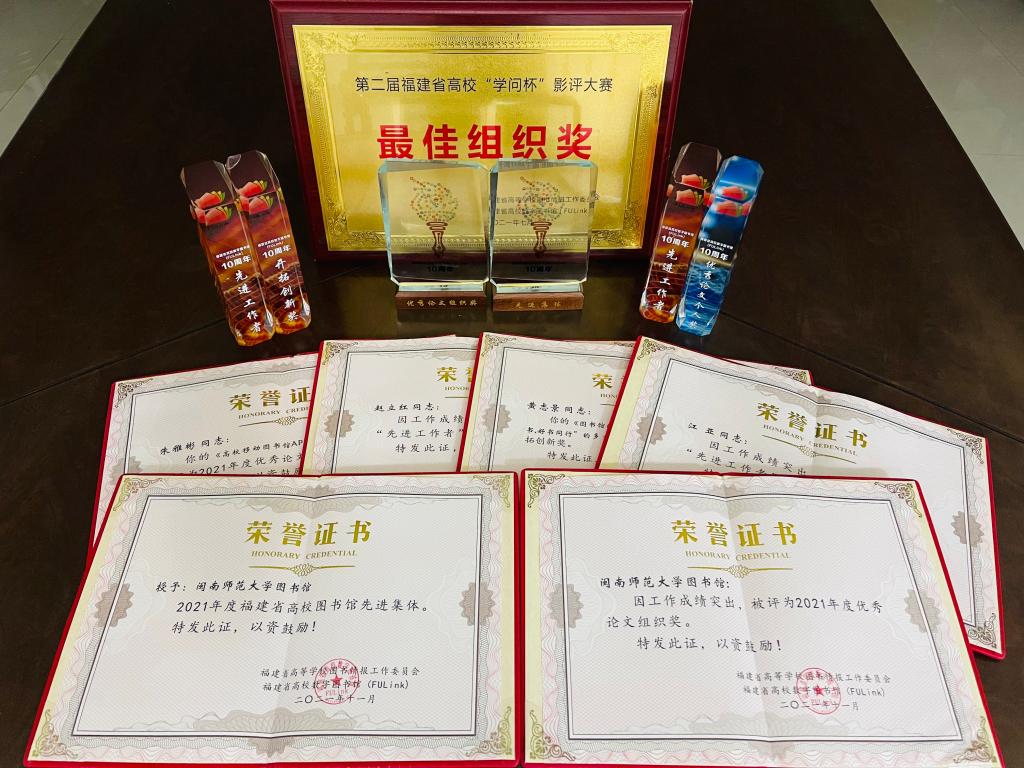 11月8日至9日,福建省高等学校图书情报工作委员会(简称“福建省高校图工委”)工作会议暨福建省高校数字图书馆(FULink)十周年庆典在福州大学(主会场)、福建江夏学院(分会场)举办,登录入口图书馆在会上被授予“2021年度福建省高校图书馆先进集体”荣誉称号。此外,登录入口图书馆还获得“优秀论文组织奖”等其他集体奖两项,“先进工作者”等个人奖四项。