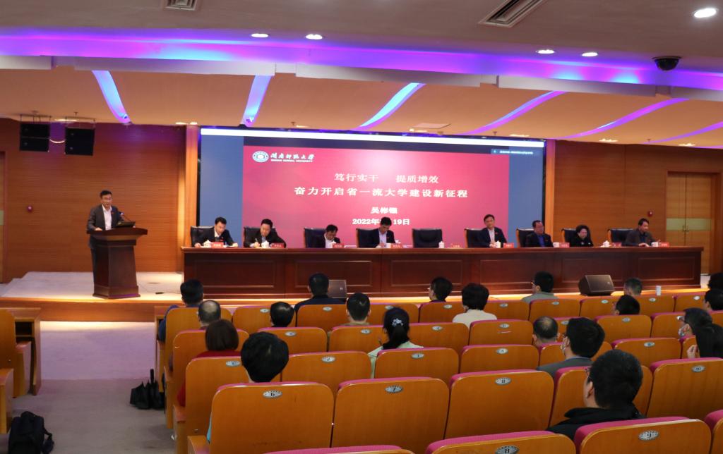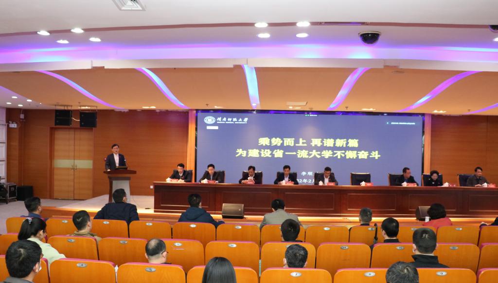 吴彬镪作了题为《笃行实干 提质增效——奋力开启省一流大学建设新征程》的讲话。他指出,2022年是党的二十大召开之年,是实施学校“十四五”规划承上启下的重要年份,也是学校以获批博士学位授予单位为新起点,补短板、强弱项、提内涵、创一流的关键之年。面临博士单位核查准备、新一轮学位点申报冲刺、补齐基础设施短板等艰巨任务,谋划好、落实好今年各项工作意义重大、责任重大。各单位要用好改革“关键招”,用活创新“源动力”,聚焦“提质增效”,提振队伍士气,大胆推动体制机制变革,深挖内部潜力,努力推动各项工作“争一流,上水平”。