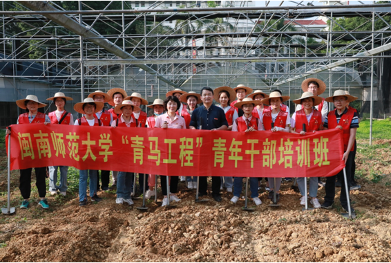 校党委常委、副校长张龙海在启动仪式上讲话。他勉励年轻干部要始终牢记党的教诲,向劳动人民学习、向生产实践学习,在青春的赛道上奋力奔跑,争取跑出当代青年的最好成绩。学员们在生物科学与技术学院院长陆銮眉的指导下开展劳动实践,他们撸起袖子、扛起锄头、挥起铲子,两人一组协助配合,种下了象征生命、希望的姜荷花,真切体会到了劳动的不易和快乐。