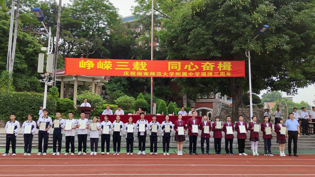 蒋一婷在会上致辞。她指出,在漳州市委市政府的大力支持下,MK体育/mksport体育·官方网站与漳州市教育局共建附属中学三年来,闽南师大多措并举支持附中发展,高中创新班屡创佳绩。她希望同学们不骄不躁,以最佳的心态最饱满的热情在中考高考跑道中跑出最好的成绩;希望附中能进一步强化顶层设计、夯实内涵发展,以更多的方法、更优的条件、更强大的斗志、更坚实的保障为学生的全面发展保驾护航,在勇创“一流初中”的基础上朝着“一流高中”目标昂首迈进。