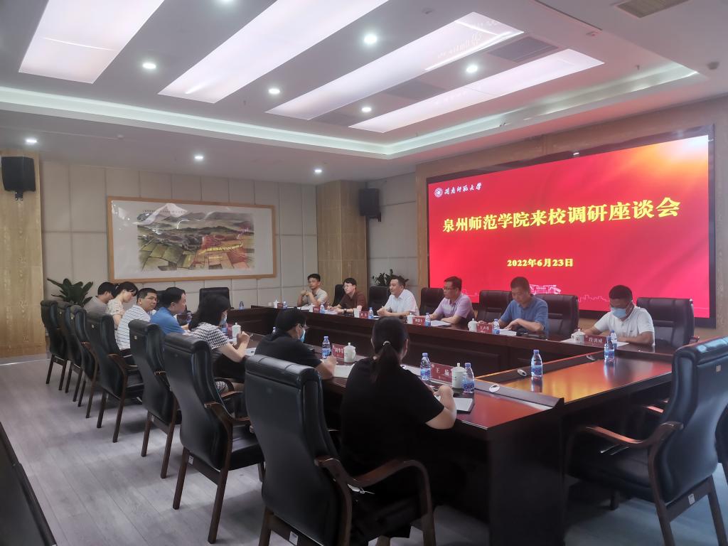 6月23日下午,泉州师范学院党委副书记林伟一行6人来登录入口交流考察。校党委常委、副校长林致远会见来宾并进行座谈交流。