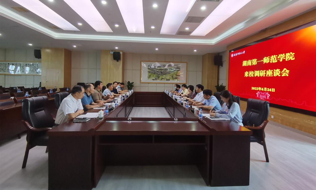 6月24日上午,湖南第一师范学院校长童小娇、副校长周发明一行来登录入口开展教育部师范教育协同提质计划调研交流。交流座谈会在科技楼1607举行。校党委书记吴彬镪,校党委常委、副校长张龙海出席座谈会。