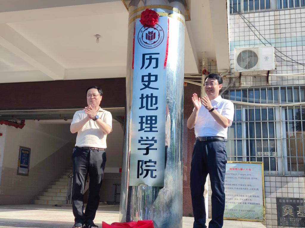 9月14日上午,历史地理学院圆山校区揭牌仪式在圆山校区1号教学楼举行。校党委常委、副校长林致远,党委常委、纪委书记戴福康为学院揭牌,历史地理学院党政班子成员及相关老师参加揭牌仪式。