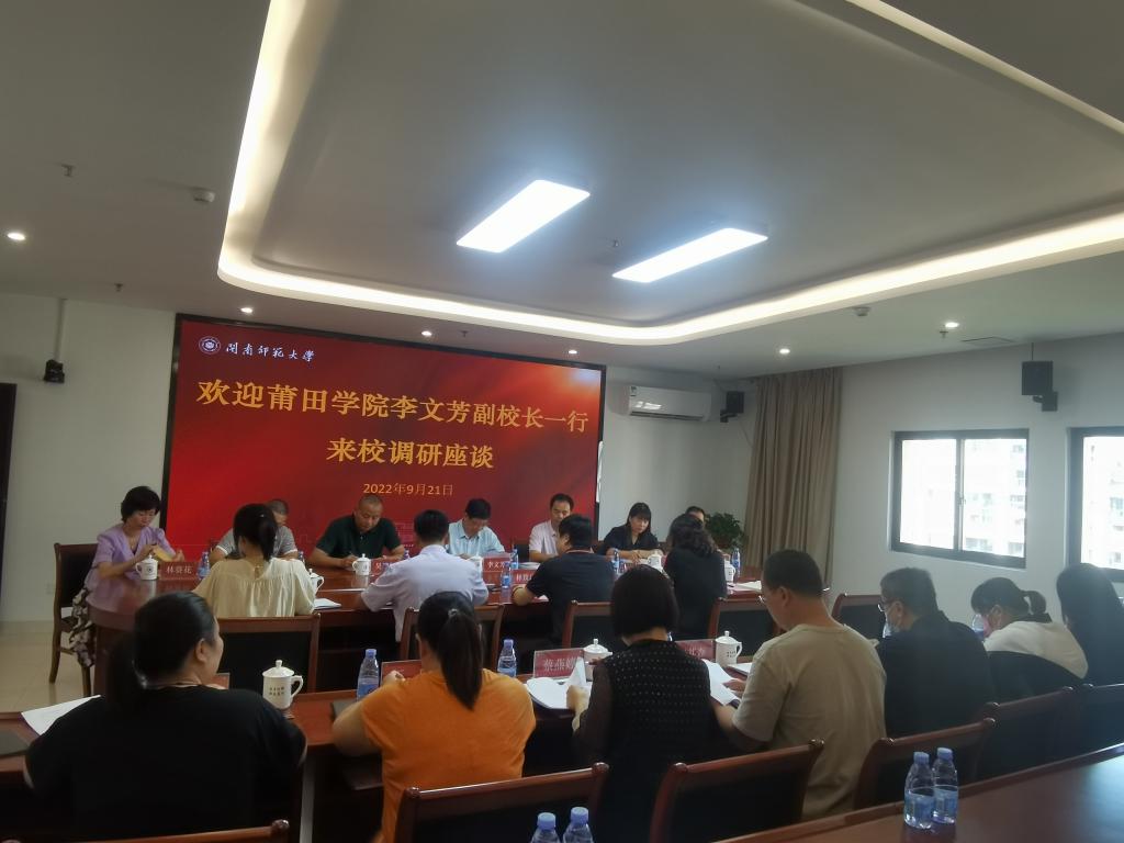 9月21日下午,莆田学院副校长李文芳一行来登录入口调研。调研座谈会在科技楼会议室举行,校党委常委、副校长林致远出席,国有资产管理处、基建处负责人及相关人员参加。