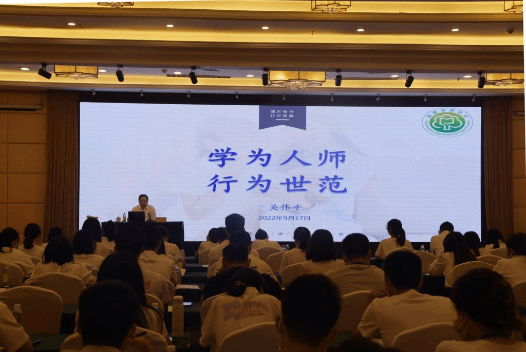 开班仪式后,吴伟平为参训学员上了题为《学为人师 行为世范》的第一堂课。吴伟平指出,教育的过程是修行的过程,要坚持“从政治上看教育、从民生上抓教育”。他围绕“知、行、合、一”,对新教师提出提出四点要求。一是要以孜孜不倦的诲人之姿,自觉承担时代重任,恪守师道尊严,落实立德树人根本任务。二是要以培养“理想远大、人格健全、富于创新、引领未来”的社会主义建设者和接班人作为矢志不渝的教学初心,时刻谨记教师使命,端正工作态度,为党育人、为国育才。三是要持之以恒立德修身、孜孜不倦苦练本领,树立起终身学习的观念,扎扎实实练好本领。四是要矢志不渝潜心育人,关心关爱每一名学生的成长进步,成为学生健康成长和全面发展的指导者和引路人。
