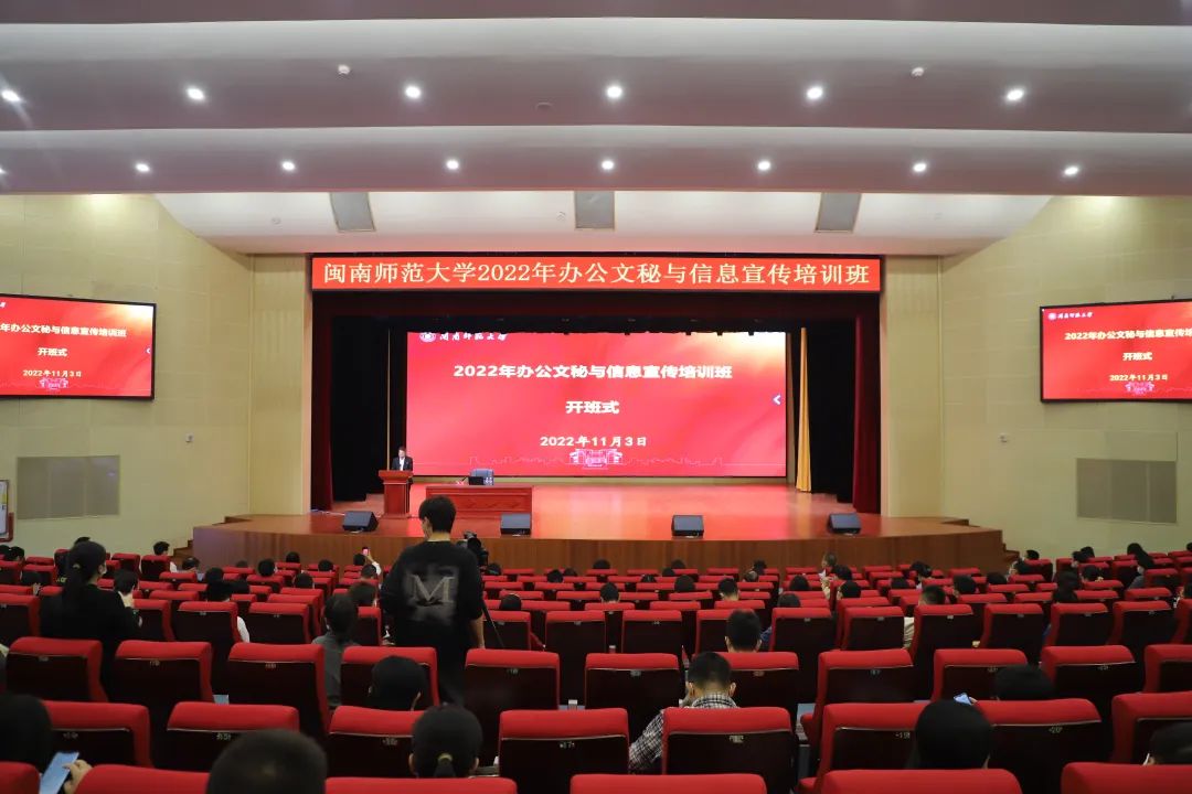 为深入学习贯彻党的二十大精神,认真落实校党委“提质增效年”工作部署,提高各单位办文、办事、办会水平和学校宣传思想工作水平,11月3日—4日,由学校办公室、党委宣传部联合主办的2022年办公文秘与信息宣传培训班在闽南文化艺术中心多功能厅举行。各二级学院办公室负责人、机关教辅单位综合科负责人、各单位公文处理人员,各单位新闻信息员、网评员、政工干部、学生记者骨干等参加培训。