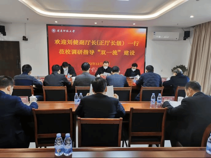 12月22日上午,省教育厅党组成员、副厅长(正厅长级)刘健一行来登录入口调研“双一流”建设工作。调研座谈会在科技信息楼会议室召开,校党委副书记、校长李顺兴,党委常委、副校长张龙海出席,会议由张龙海主持。