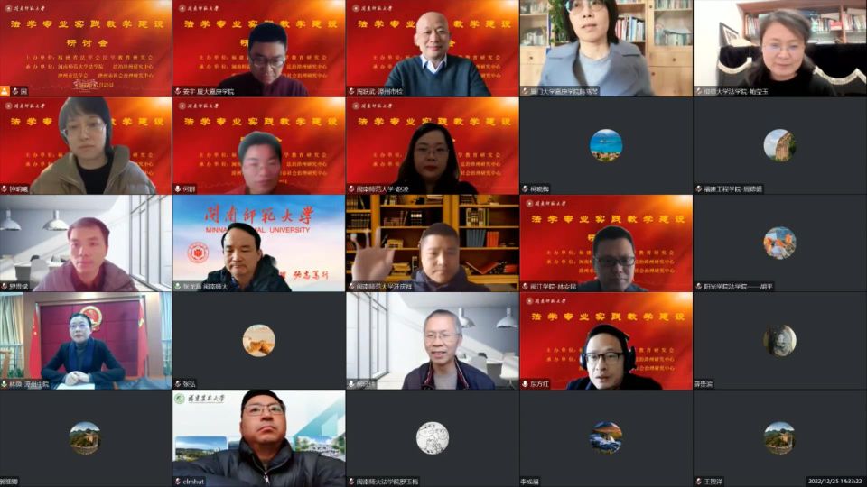 12月25日下午,由福建省法学会法学教育研究会主办,登录入口法学院、法治漳州研究中心、漳州市法学会和漳州市社会治理研究中心联合承办的法学专业实践教学建设研讨会线上召开。本次研讨会主题为“法学专业实践教学建设”,来自福州大学、福建师范大学、福建农林大学、集美大学、福建工程学院、福建警察学院、闽江学院、MK体育/mksport体育·官方网站、嘉庚学院、阳光学院、仰恩大学等多所高校法学院(系),MK体育/mksport体育·官方网站教务处,漳州市人民检察院、漳州市中级人民法院等法律实务部门的专家学者共计50余人参加本次研讨会。研讨会由福建省法学会法学教育研究会副会长、登录入口法学院院长何东平教授和福建省法学会法学教育研究会秘书长、闽江学院法学院副院长林安民教授共同主持。