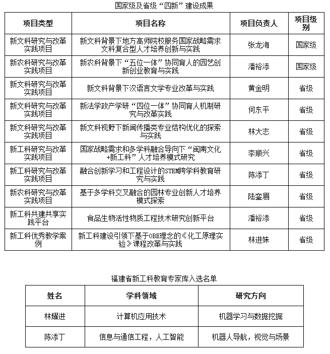 目前,登录入口已获批1项国家级、3项省级新文科研究与改革实践项目;1项国家级、1项省级新农科研究与改革实践项目;2项省级新工科研究与改革实践项目;1个省级新工科优秀教学案例;1个省级新工科共建共享实践平台。2名教师入选福建省新工科教育专家库。