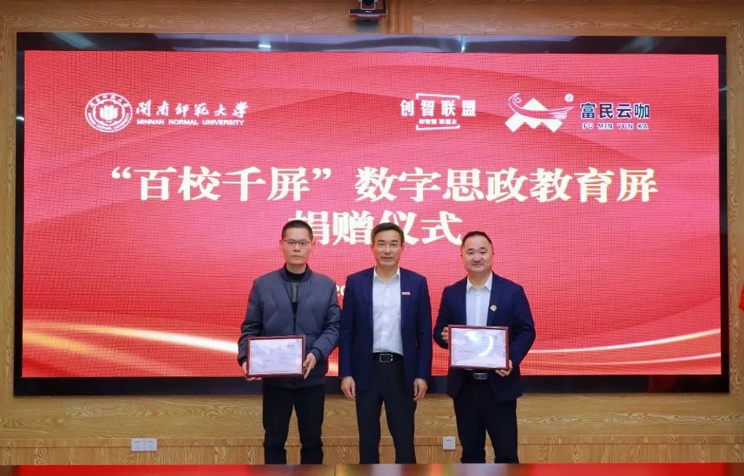 签约仪式后举行捐赠授牌仪式、捐赠证书颁发仪式和思政教育屏上线开机仪式。