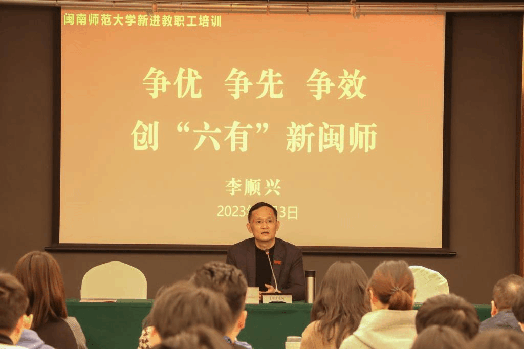 开班式结束后,校党委副书记、校长李顺兴作题为《争优 争先 争效 创“六有”新闽师》的专题讲座。李顺兴从校史校情出发,结合自身工作思考,对全体学员提出殷切希望。他希望新进教职工争当理论武装的优等生、敢拼会赢的先行者、务求实效的实干家,立志成为有理想信念、有道德情操、有扎实学识、有仁爱之心的“四有”好教师,成为忠诚、干净、担当的好干部,同心共创有历史、有故事、有文化、有价值、有情怀、有影响的新闽南师大,为推动学校办学事业高质量发展,推进“省一流”大学建设贡献力量。