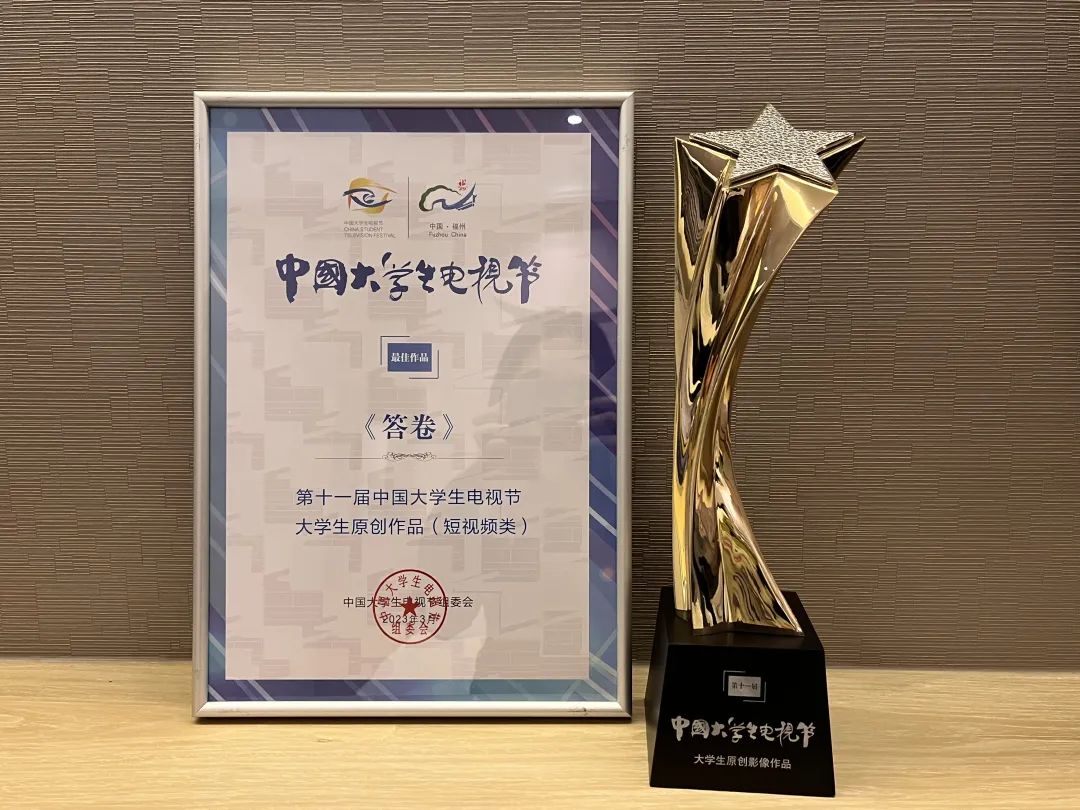近日,以“奋进青春 强国有我”为主题的第十一届中国大学生电视节在福州海峡奥体中心落幕。在“大学生原创影像作品”单元,登录入口新闻传播学院教师袁佳瑜、张小琴、胡鸿影指导,学生胡慧娟、王昱文、吴珊珊、冯佳倩、郭婷玉、罗毅创作的《答卷》,从近2000部参赛作品中脱颖而出,荣获最高奖项“短视频类最佳作品”。
