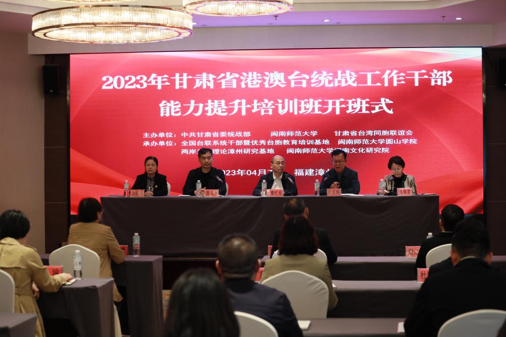 4月7日,2023年甘肃省港澳台统战工作干部能力提升培训班在漳州开班。中共甘肃省纪委监委派驻省委统战部纪委监察组组长秦忙龙,校党委副书记肖庆伟,中共漳州市委统战部二级巡视员沈诏坤出席,甘肃省委港澳台统战工作系统的近30名干部参加开班式,开班式由甘肃省委统战部三处处长马淑芸主持。