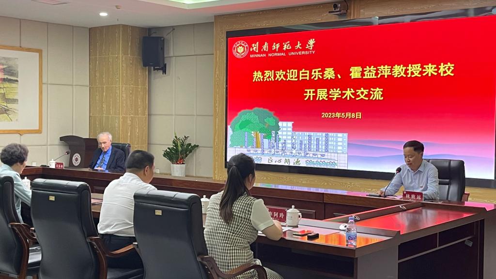 为加快建设福建高质量教育体系,积极发挥福建教育督导智库功能,5月8日,MK体育/mksport体育·官方网站教育督导研究院举办中法教育督导互学互鉴学术交流活动。法国荣誉国民教育汉语总督学、法国国家东方语言文化学院博士生导师白乐桑应邀来登录入口开展学术交流、调研考察。华东师范大学二级教授、博导霍益萍,国家督学、福建省教育厅原副厅长、一级巡视员、登录入口教育督导研究院学术委员会主任李迅,国家特约教育督导员、福建省教育厅专职副总督学黄建顺参加了交流活动。国家特约教育督导员、校党委书记、教育督导研究院院长吴彬镪,校党委副书记、校长李顺兴与白乐桑教授一行进行了亲切交流。
