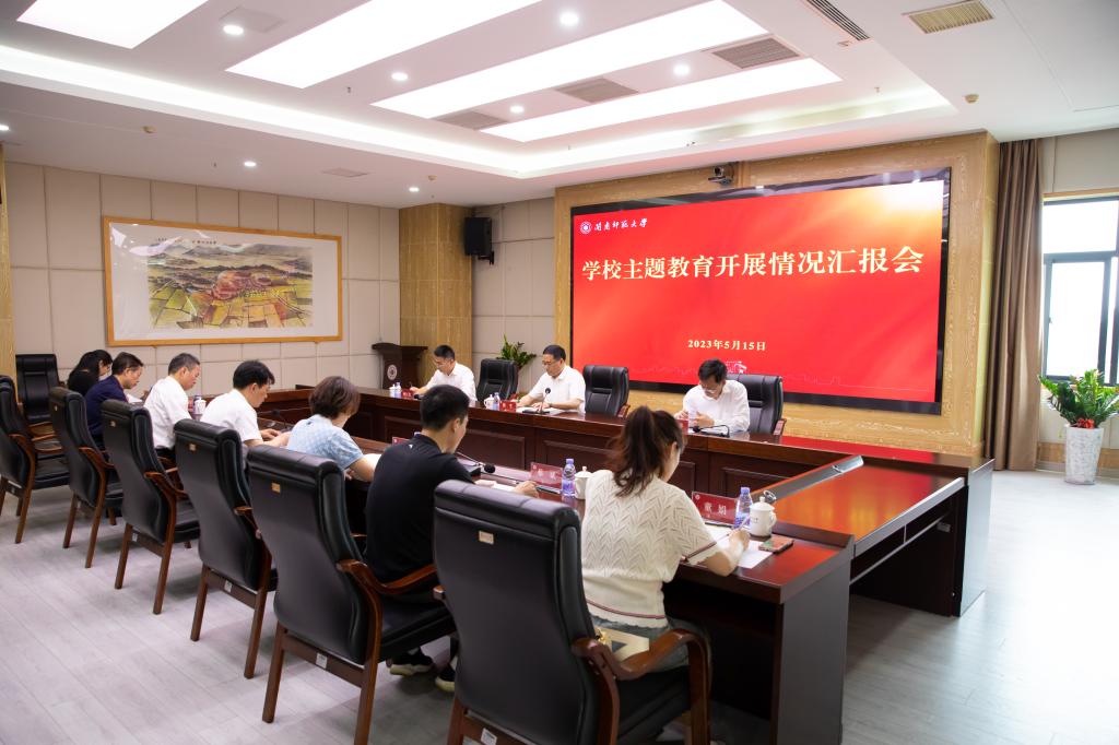 会上,钟发亮汇报了学校主题教育开展情况和特色亮点。他表示,主题教育开展以来,学校牢牢把握“学思想、强党性、重实践、建新功”总要求,把理论学习、调查研究、推动发展、检视整改贯通起来,有力有序扎实推进各项工作。组织领导突出“快”字,做到工作部署快、制定方案快、推进落实快,确保主题教育不虚不偏、落到实处。理论学习突出“深”字,坚持领导干部带头学、创新形式沉浸学、挖掘特色资源学、青年党员引领学,推动理论学习入脑入心。调查研究突出“实”字,注重精准选题、明确重点,下沉一线、破解难题,走出校门、学习借鉴。检视整改突出“准”字,做到对标对表检视问题、立行立改抓实整改、系统梳理建章立制。宣传引导突出“浓”字,通过校内宣传、校外媒体报道,营造主题教育浓厚氛围。
