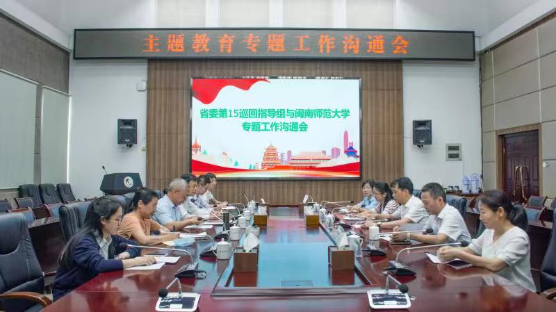 5月19日下午,省委第十五巡回指导组与MK体育/mksport体育·官方网站主题教育专题工作沟通会在福建农林大学明德楼会议室召开。省委第十五巡回指导组组长郑建岚及全体成员,校党委副书记、主题教育领导小组办公室主任钟发亮及主题教育办公室四个工作组相关人员参加会议。会议由郑建岚主持。