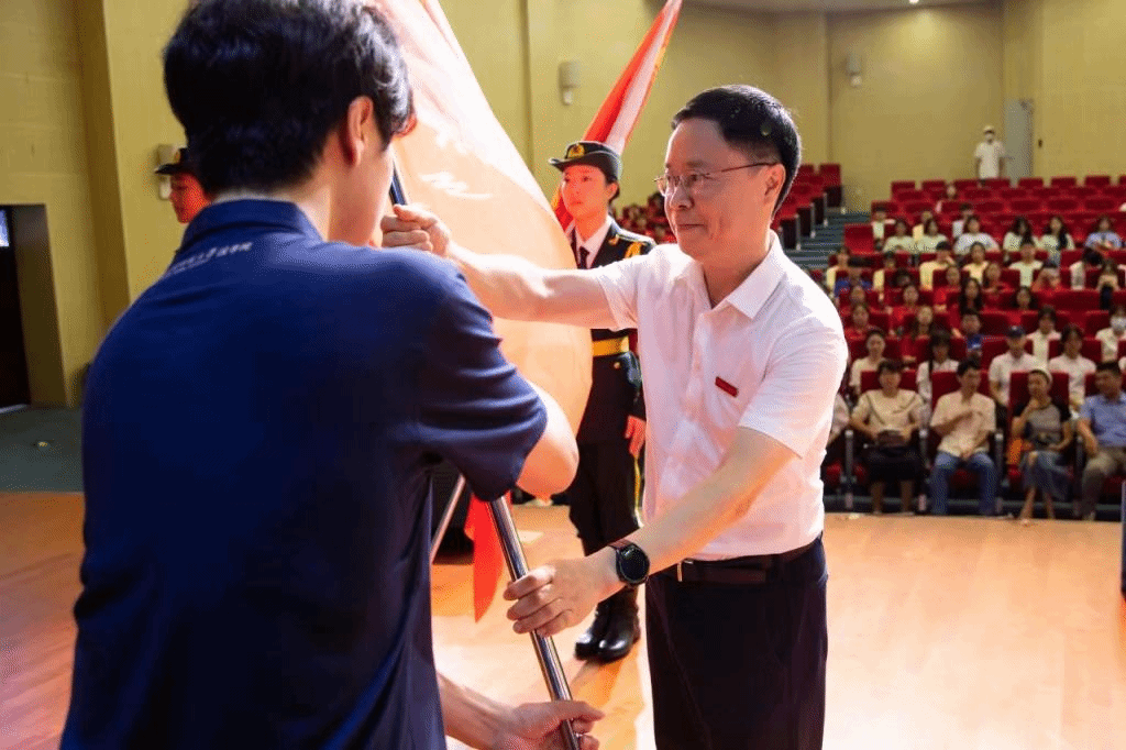 林致远为社会实践团队代表授旗,并作动员讲话。他指出,大学生暑期“三下乡”社会实践是引导青年学生深入学习贯彻习近平新时代中国特色社会主义思想和党的二十大精神的重要途径,是学校落实“十大育人”体系的重要载体,更是青年学子受教育、长才干、作贡献的宝贵机会。他希望同学们坚定理想信念,在实践中把牢青春航向;深入调查研究,在实践中了解国情社情;坚持脚踏实地,在实践中发扬“吃苦精神”;敢于挺膺担当,在实践中展现青春作为。全体实践团队师生要在基层的广阔天地里唱响新时代的青春之歌,让青春在强国建设、民族复兴的火热实践中绽放绚丽之花。