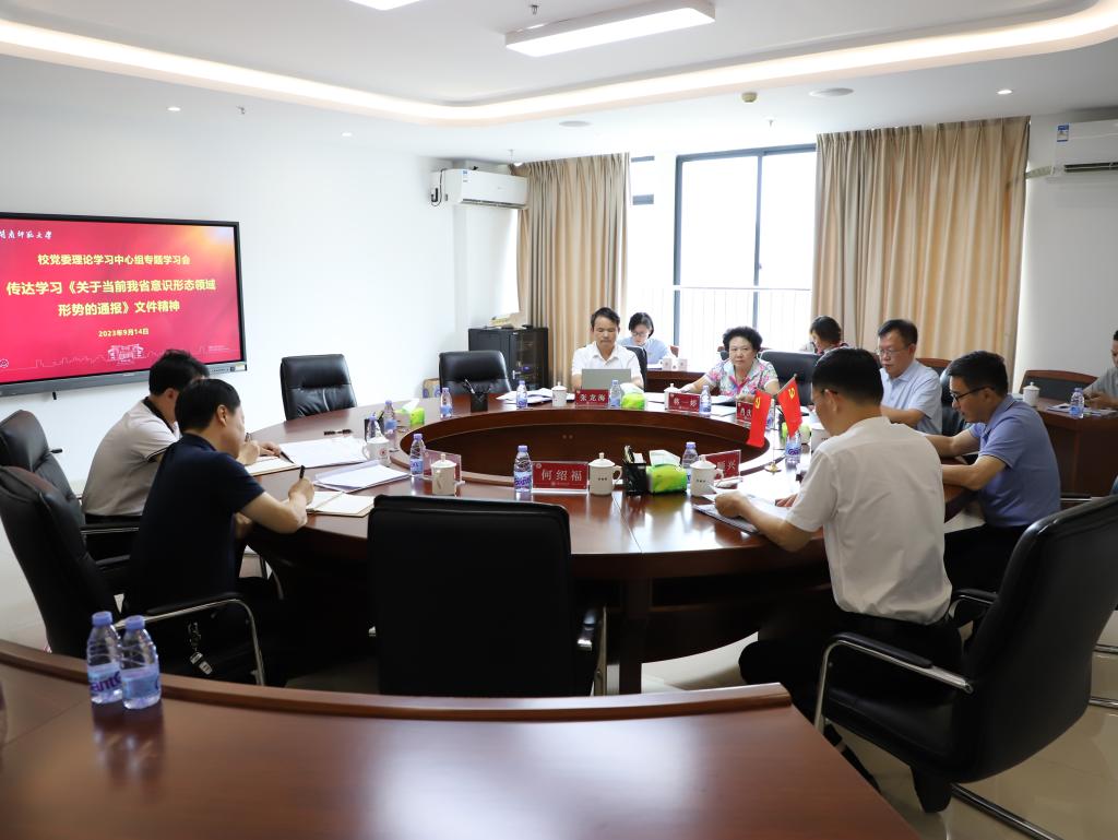 9月14日,校党委召开理论学习中心组学习会,传达学习全省组织工作会议精神和关于当前我省意识形态领域形势的通报。会议由校党委书记吴彬镪主持。