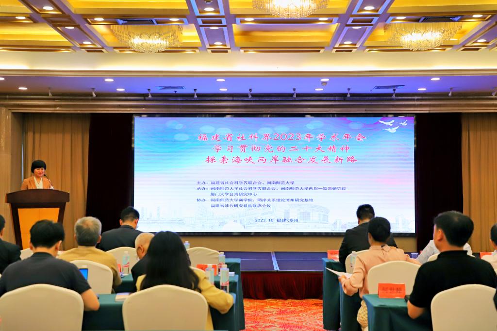 10月11-13日,福建省社科界2023年学术年会“党的二十大精神与探索海峡两岸融合发展新路”论坛在漳举行。海峡两岸关系协会副会长马晓光、福建省社会科学界联合会副主席郑东育、漳州市副市长林少金、登录入口校长李顺兴、厦门大学台湾研究中心主任陈先才出席开幕式并致辞,校党委副书记肖庆伟主持开幕式。