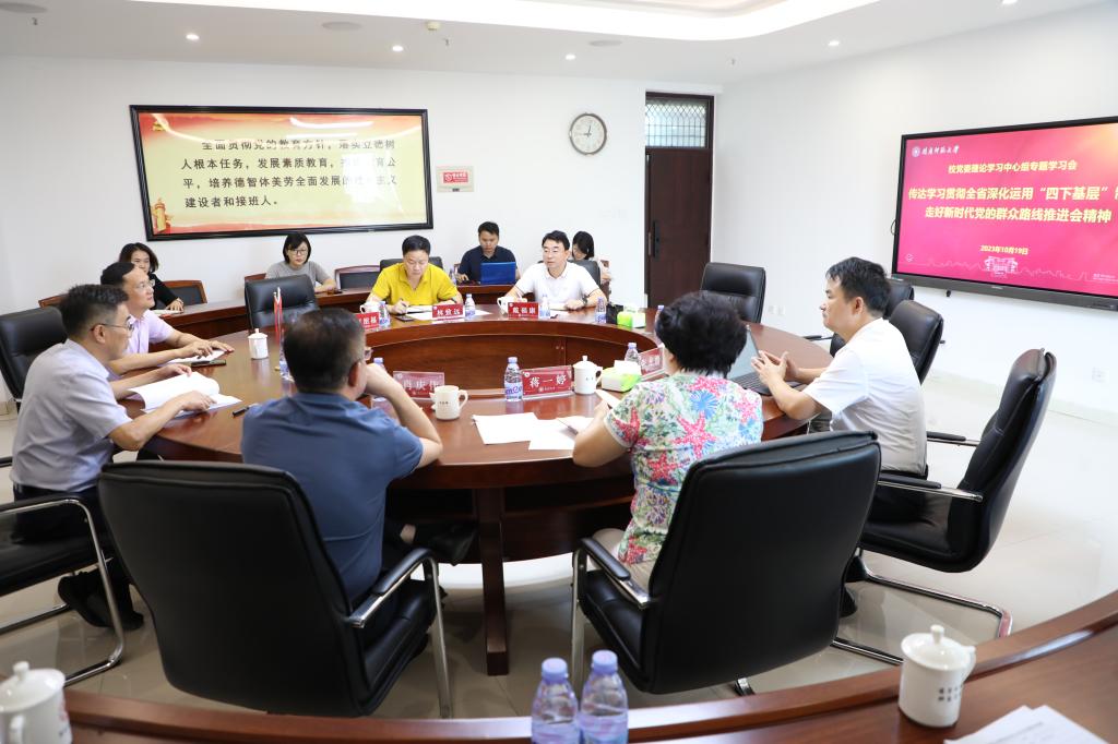10月19日,校党委理论学习中心组召开专题学习会,深入学习贯彻全省深化运用“四下基层”制度走好新时代党的群众路线推进会精神。校党委班子成员、党委理论学习中心组学习秘书参加。会议由校党委书记吴彬镪主持。
