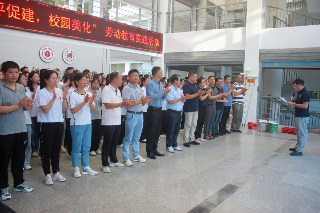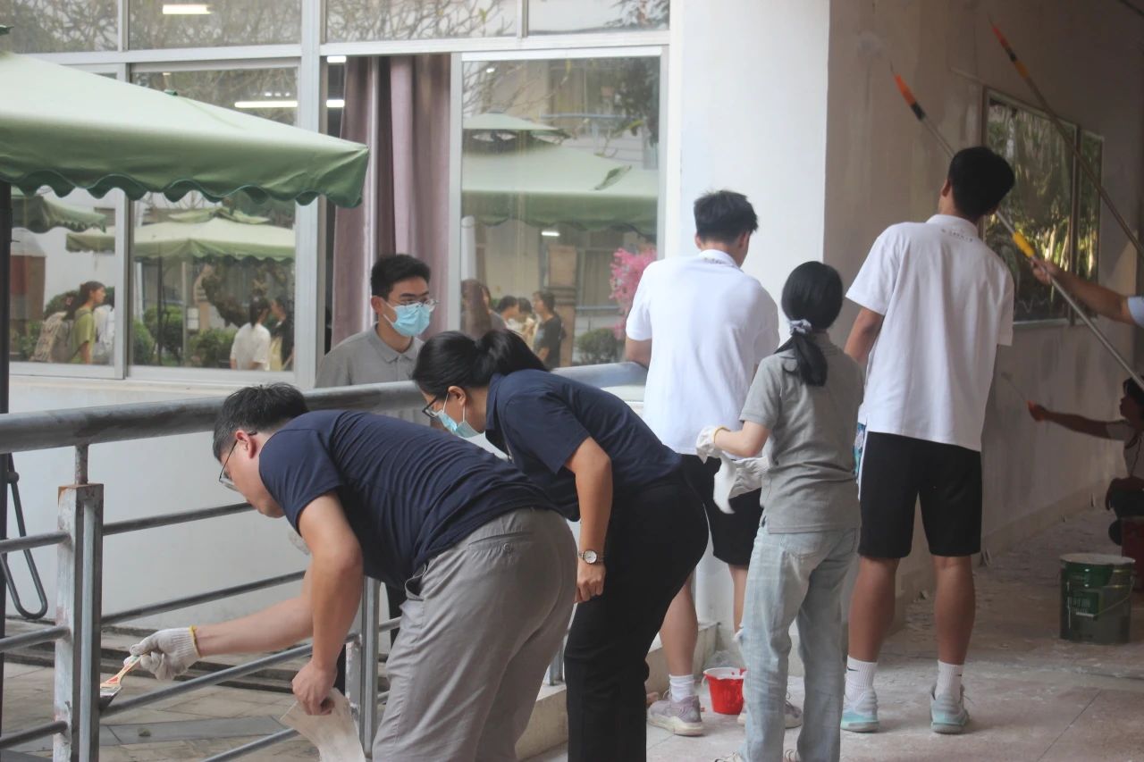 全体师生以主人翁的态度,十足的干劲、饱满的热情投入劳动。他们提着涂料桶,拿着长把刷子,用自己的双手让教学楼的墙壁变得干净整洁。清理污渍、打磨栏杆、粉刷墙壁……师生们辛勤劳动的身影在教学楼上下穿梭,大家分工协作,认真探讨粉刷流程和要求,在沟通解决问题和齐心协力劳作的过程中涵养劳动精神。