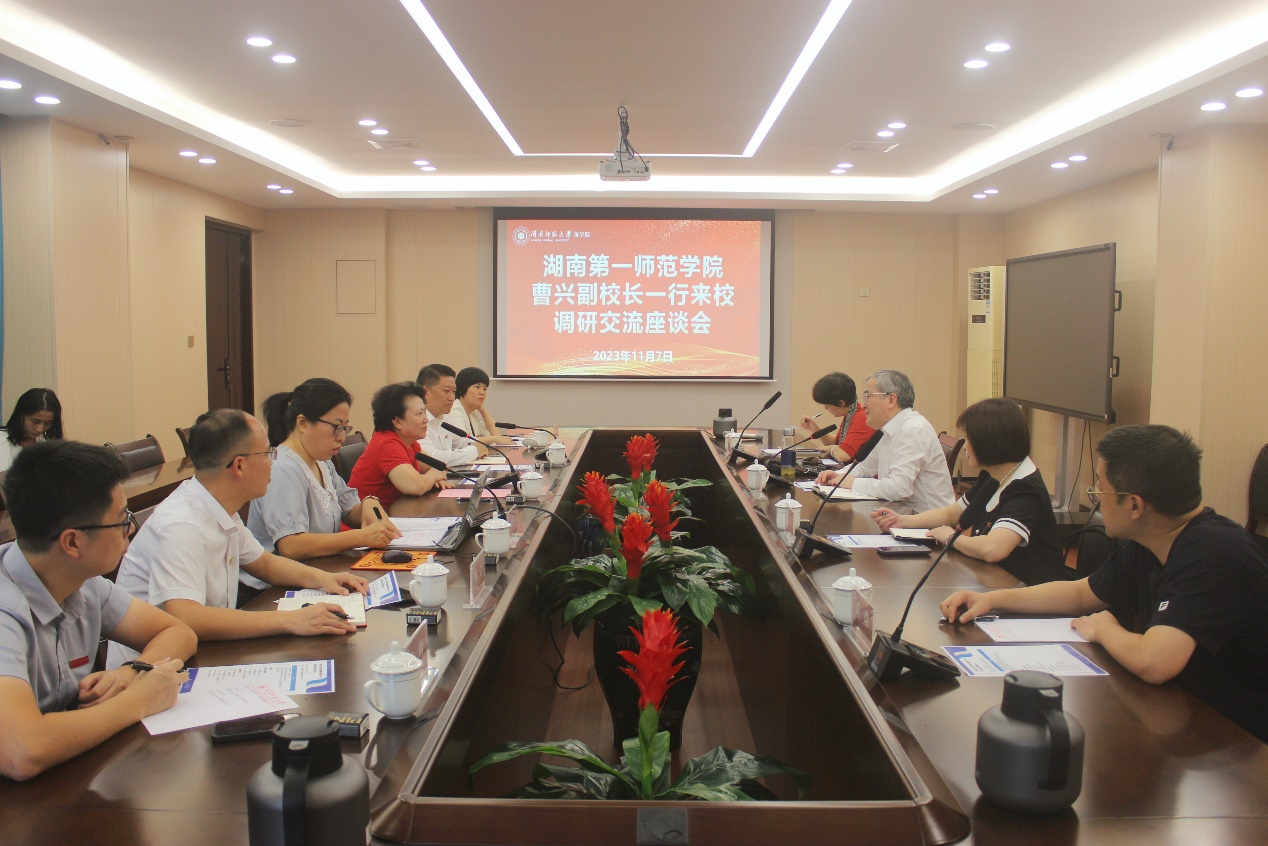 11月7日,湖南第一师范学院副校长曹兴一行来登录入口调研交流。校党委常委、副校长蒋一婷出席座谈会。