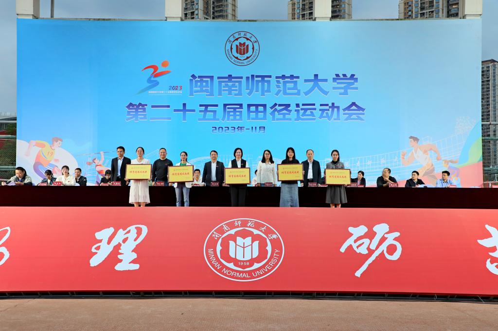 闭幕式上表彰了团体获奖单位、体育道德风尚奖获奖单位、优秀裁判员、优秀运动员。物理与信息工程学院、化学化工与环境学院、商学院、生物科学与技术学院、外国语学院、数学与统计学院分别获得甲组团体总分前六名;体育学院2022级、2023级、2021级分别获乙组团体总分前三名;文学院、体育学院、数学与统计学院、商学院、法学院获体育道德风尚奖;芦紫蓉等15位同学获评“优秀裁判员”;黄雅瑜等38位同学获评“优秀运动员”。张龙海及有关职能部门负责人为获奖集体和个人颁奖。