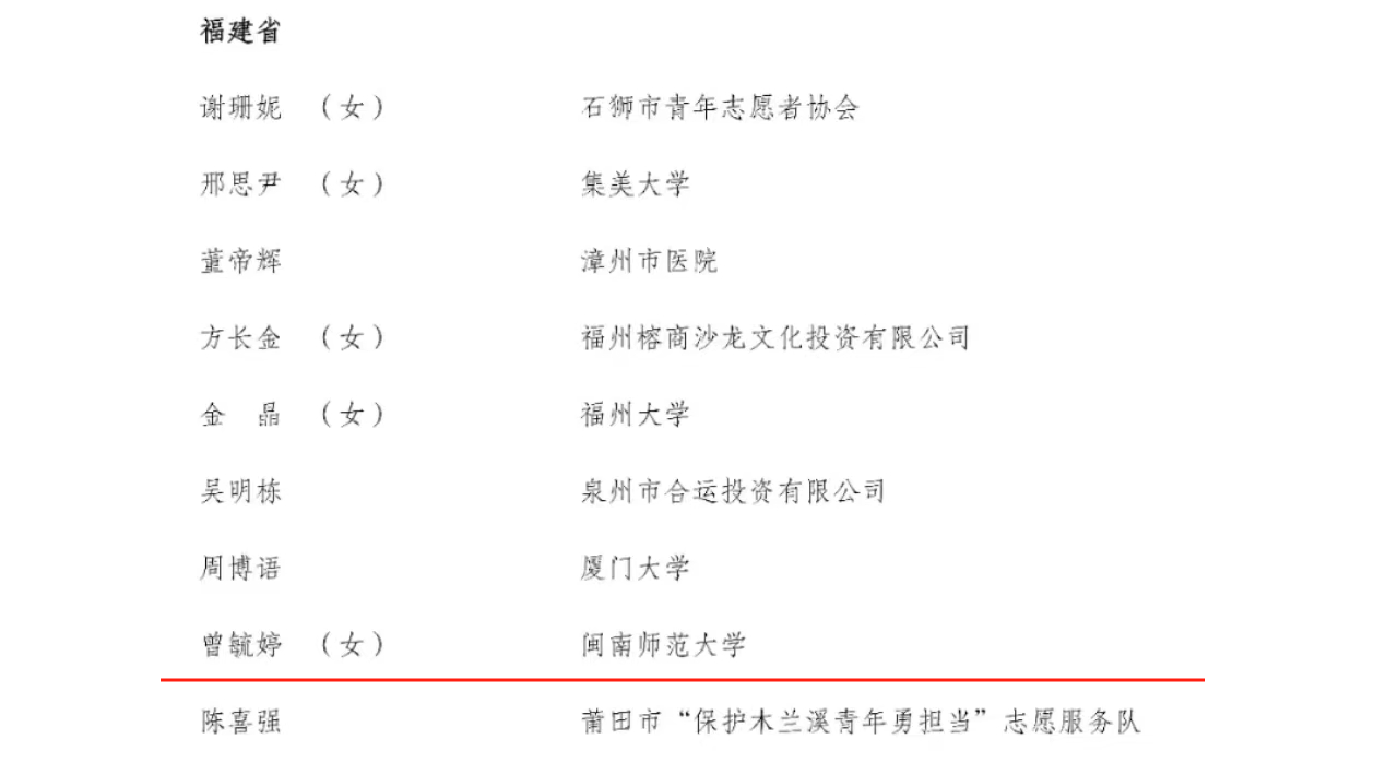 据悉,中国青年志愿者优秀个人奖、组织奖、项目奖评选表彰活动是由共青团中央、中国青年志愿者协会授予的我国青年志愿服务领域的最高荣誉,每两年举办1次。旨在深入推进共青团全面深化改革,激励广大青年践行社会主义核心价值观,弘扬“奉献、友爱、互助、进步”的志愿精神,发挥先进示范引领作用,积极营造支持、参与、热爱志愿服务的社会文化氛围。此次评选,全国共有260名个人荣获中国青年志愿者优秀个人奖。