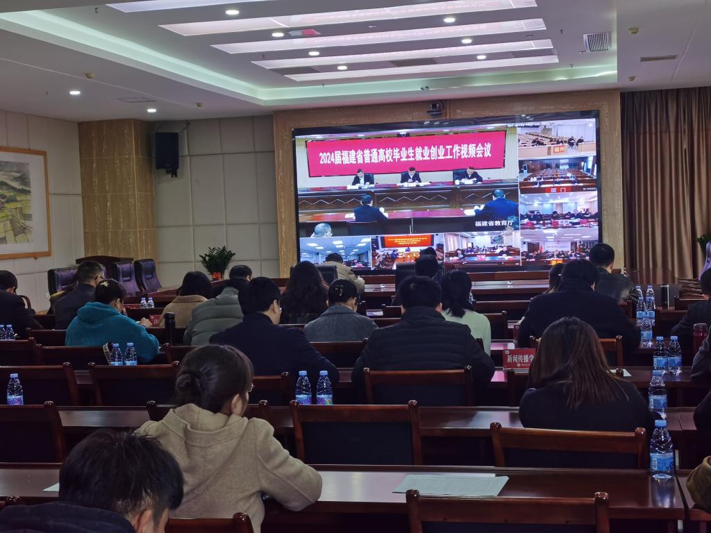 会前,全体参会人员收听收看了福建省2024届普通高校毕业生就业创业工作视频调度会。
