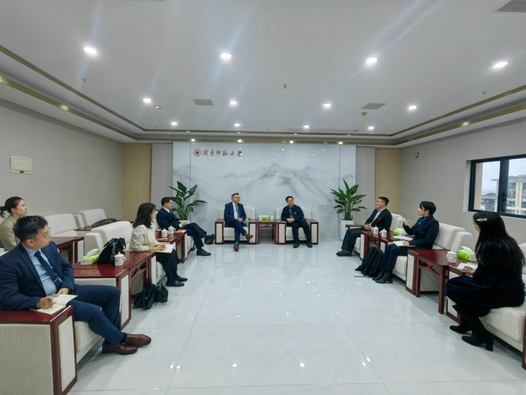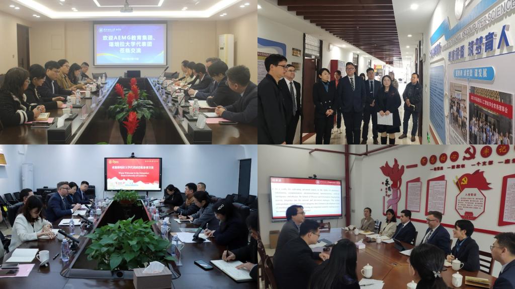座谈后,堪培拉大学代表团分别前往物理与信息工程学院、计算机学院、新闻传播学院、商学院四个教学单位调研,就研究生联合培养、校际科研合作平台搭建、校际学生互派游学等事项进行探讨交流。
