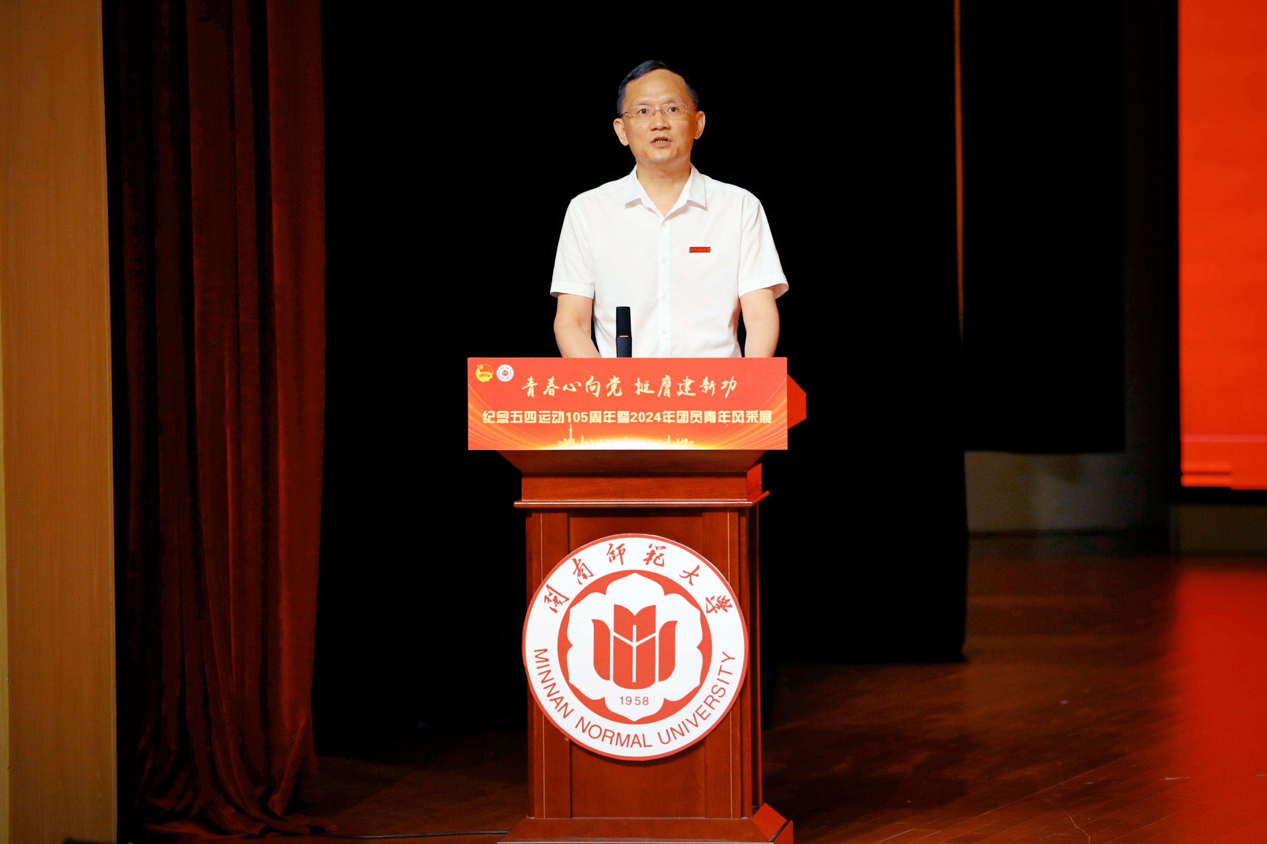 5月9日,纪念五四运动105周年暨“青春心向党 挺膺建新功”团员青年风采展在闽南文化艺术中心多功能厅召开。校党委书记、校长李顺兴,校党委副书记林致远出席。风采展由校团委副书记童娟主持。