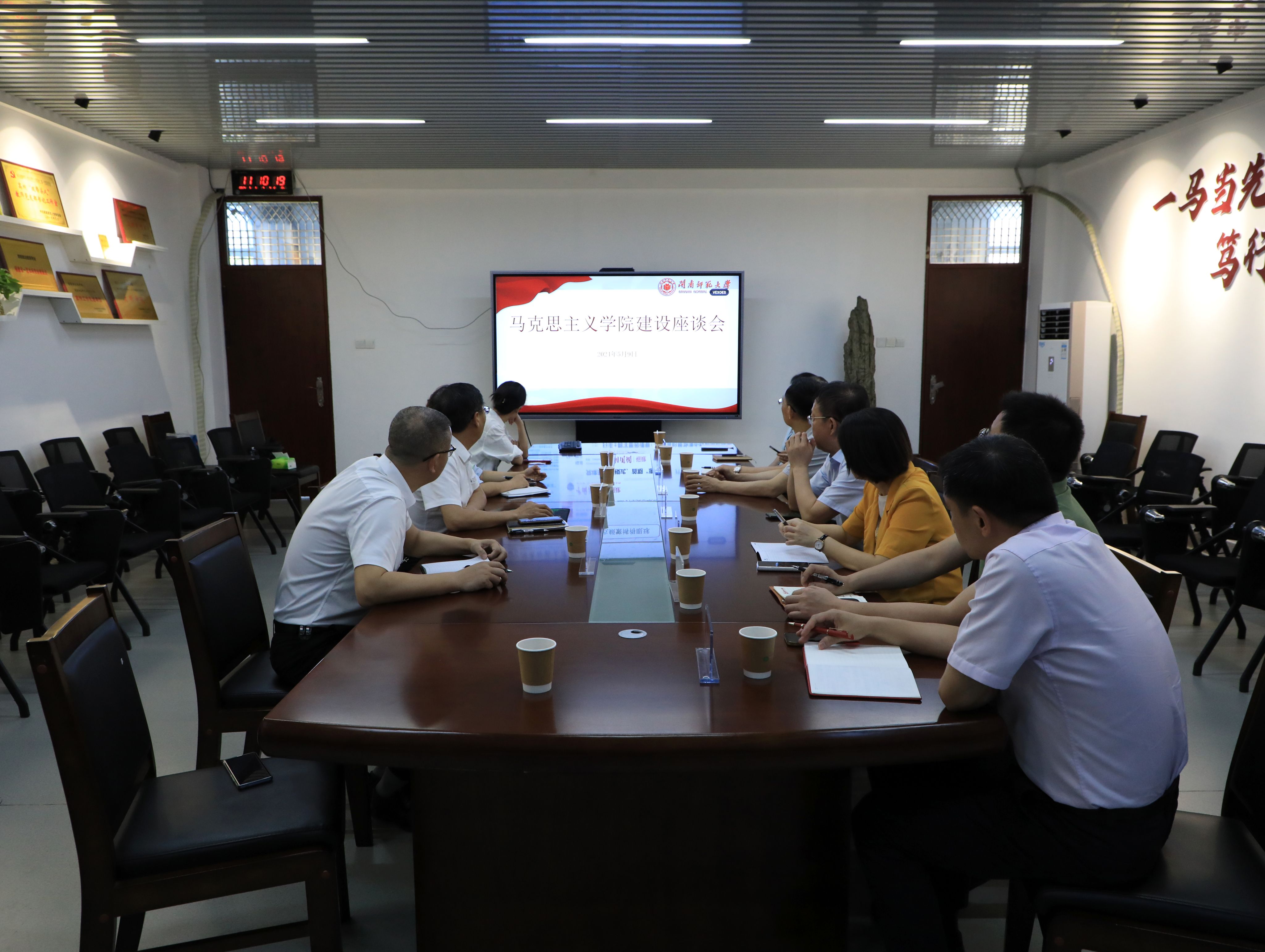 学校办公室、宣传部、教师工作部、学科建设与研究生工作处、教务处、科研处等部门负责人和马克思主义学院领导班子参加现场办公会。