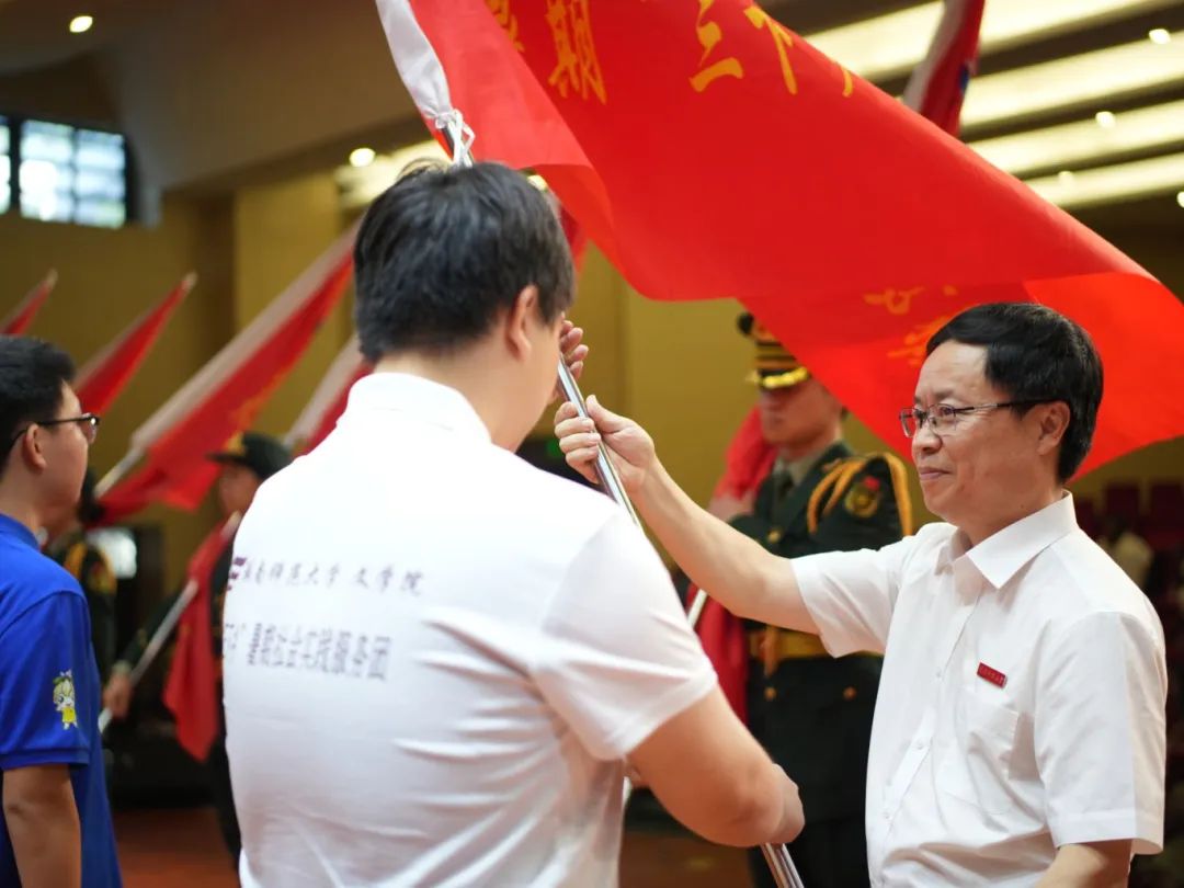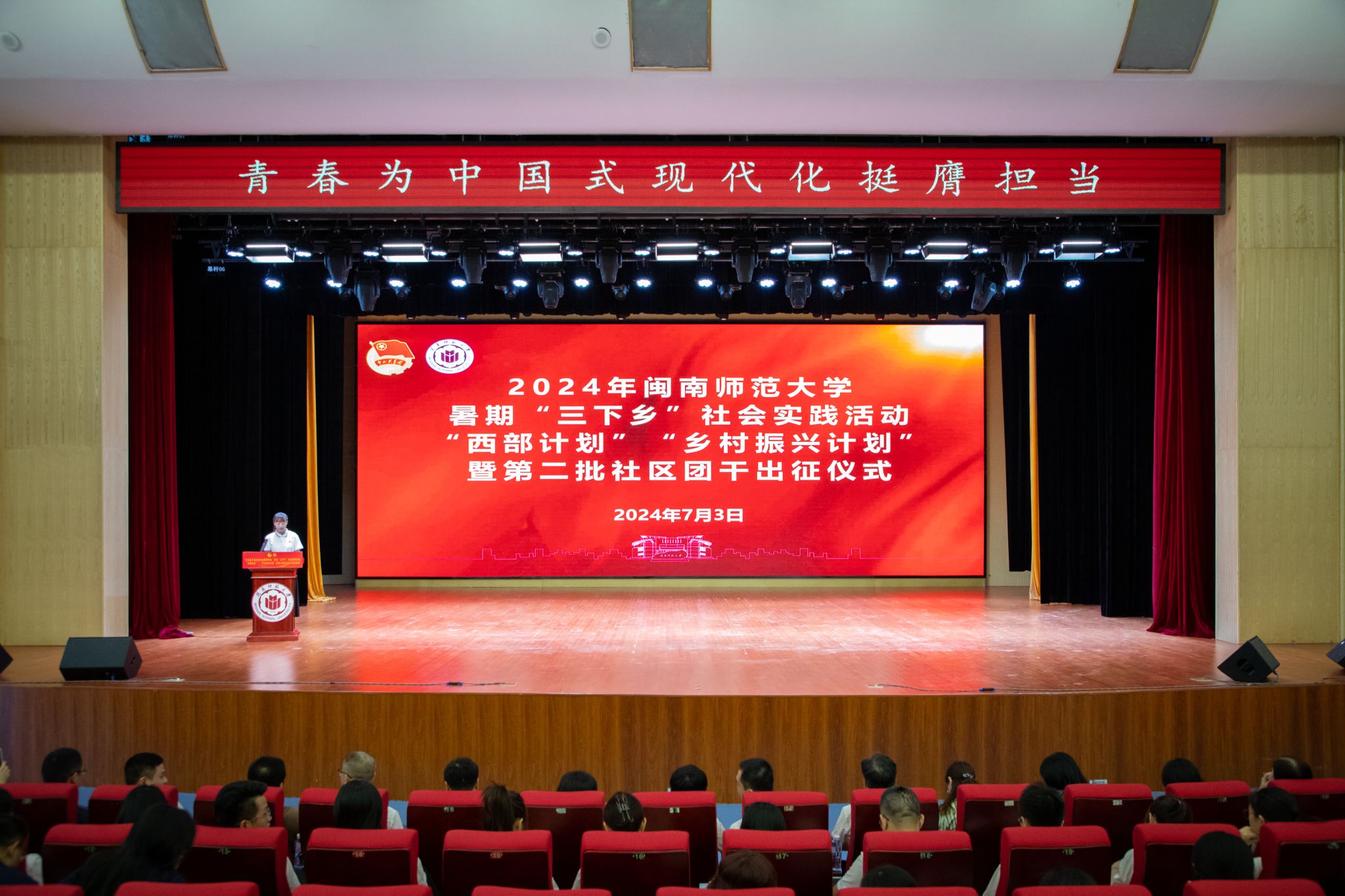 7月3日,2024年MK体育/mksport体育·官方网站暑期“三下乡”社会实践活动、“西部计划”“乡村振兴计划”暨第二批社区团干出征仪式在闽南文化艺术中心多功能厅举行。校党委副书记林致远出席。校党委宣传部、统战部、学生处、教务处、团委、马克思主义学院、文学院负责人,各二级学院分管学生工作副书记、团委书记,学生处、校团委机关全体人员,带队教师、各实践队代表、“西部计划”“乡村振兴计划”录取志愿者代表、第二批社区团干代表等参加。校团委副书记童娟主持仪式。