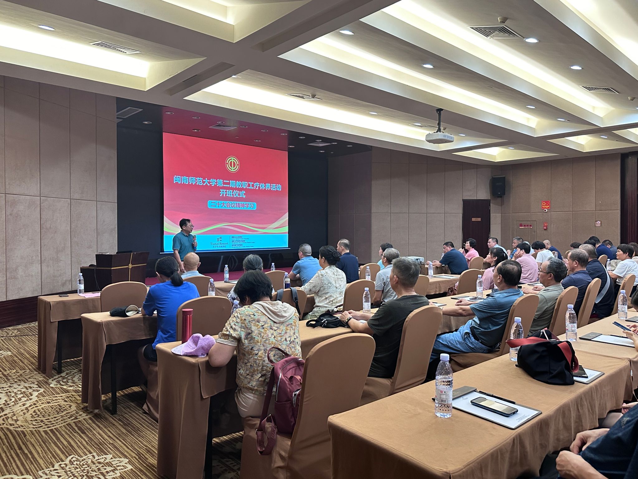 7月8日-12日,MK体育/mksport体育·官方网站第二期教职工疗休养活动在永定天子温泉疗休养基地举行。来自学校不同岗位的一线教职工99人参加本次活动。校党委常委、副校长何绍福出席开班式并致辞。