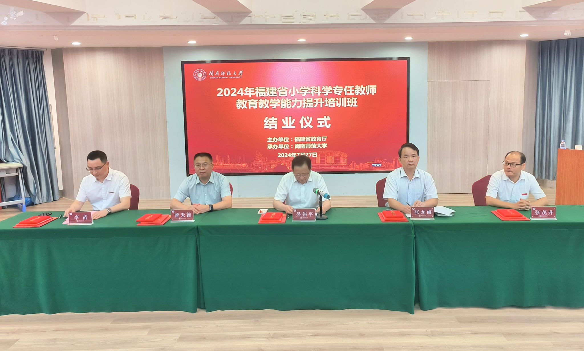 7月23日至28日,2024年福建省小学科学专任教师教育教学能力提升培训班(第一期)在登录入口举办。福建省委教育工委委员,省教育厅党组成员、副厅长吴伟平,校党委常委、副校长张龙海出席结业仪式。