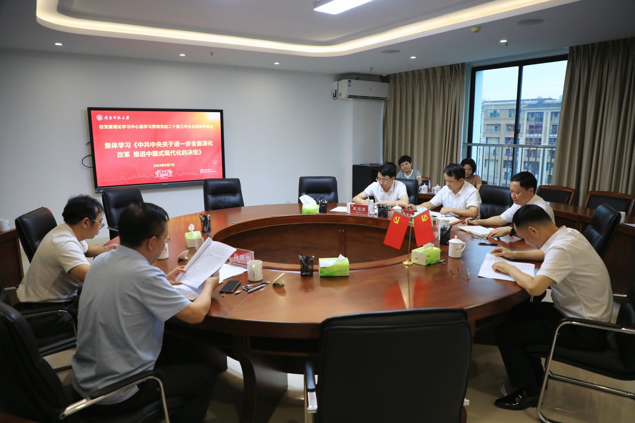 8月7日下午,校党委理论学习中心组召开学习会,专题学习党的二十届三中全会精神。全体校领导、校党委理论学习中心组学习秘书参加。会议由校党委书记、校长李顺兴主持。