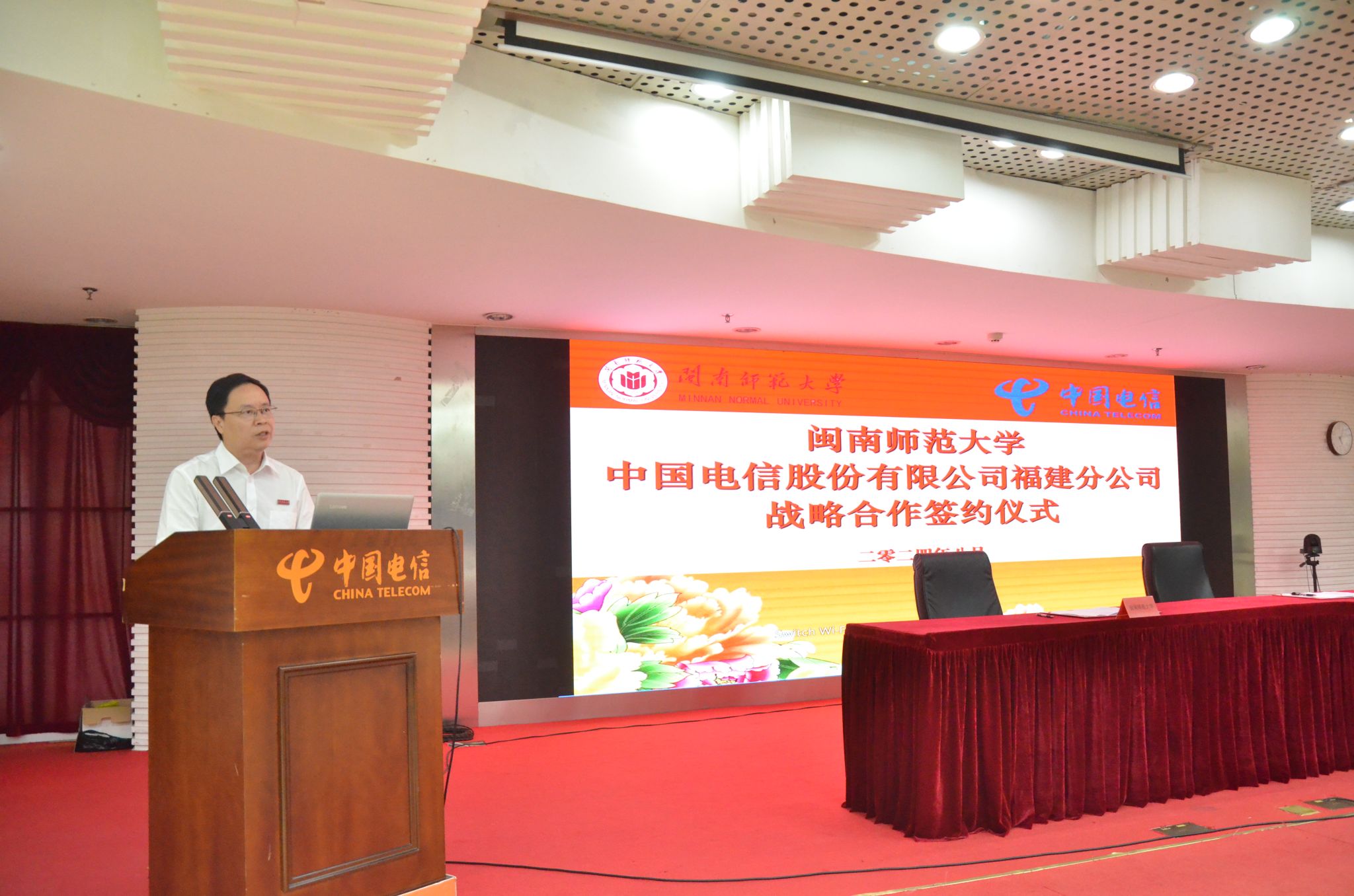 林致远在签约仪式上致辞。他指出,学校将充分发挥专业优势,整合人才和平台资源,与中国电信福建分公司携手加强科研交流,推动联合实验室建设,共同为“数字福建”建设贡献力量。