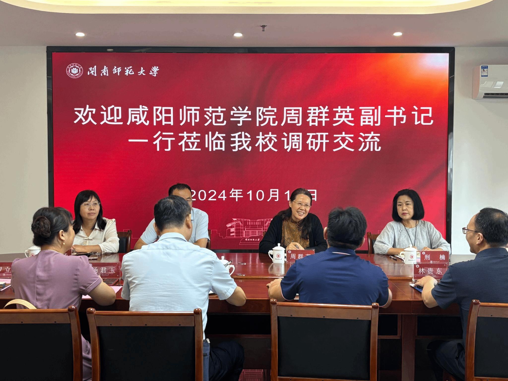 10月12日上午,咸阳师范学院党委副书记周群英一行来登录入口调研。校党委常委、副校长何绍福出席座谈会。