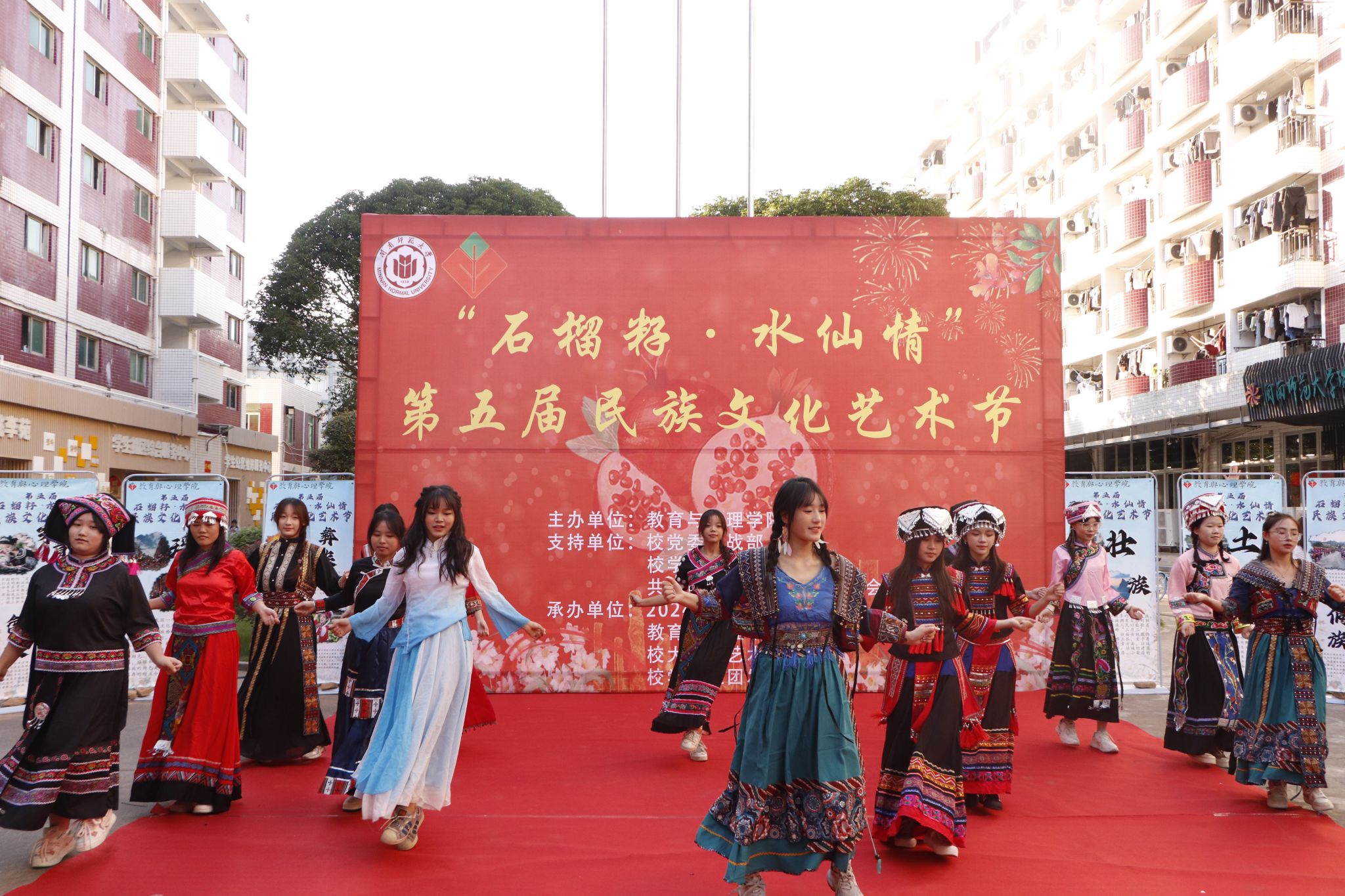 10月31日至11月7日,教育与心理学院在瑞京学生社区举办“石榴籽·水仙情”第五届民族文化艺术节系列活动,包括少数民族预科班民族文化主题班会、民族文化游园、民族服饰展示、“石榴籽·水仙情”辅导员工作室揭牌、文艺汇演等。