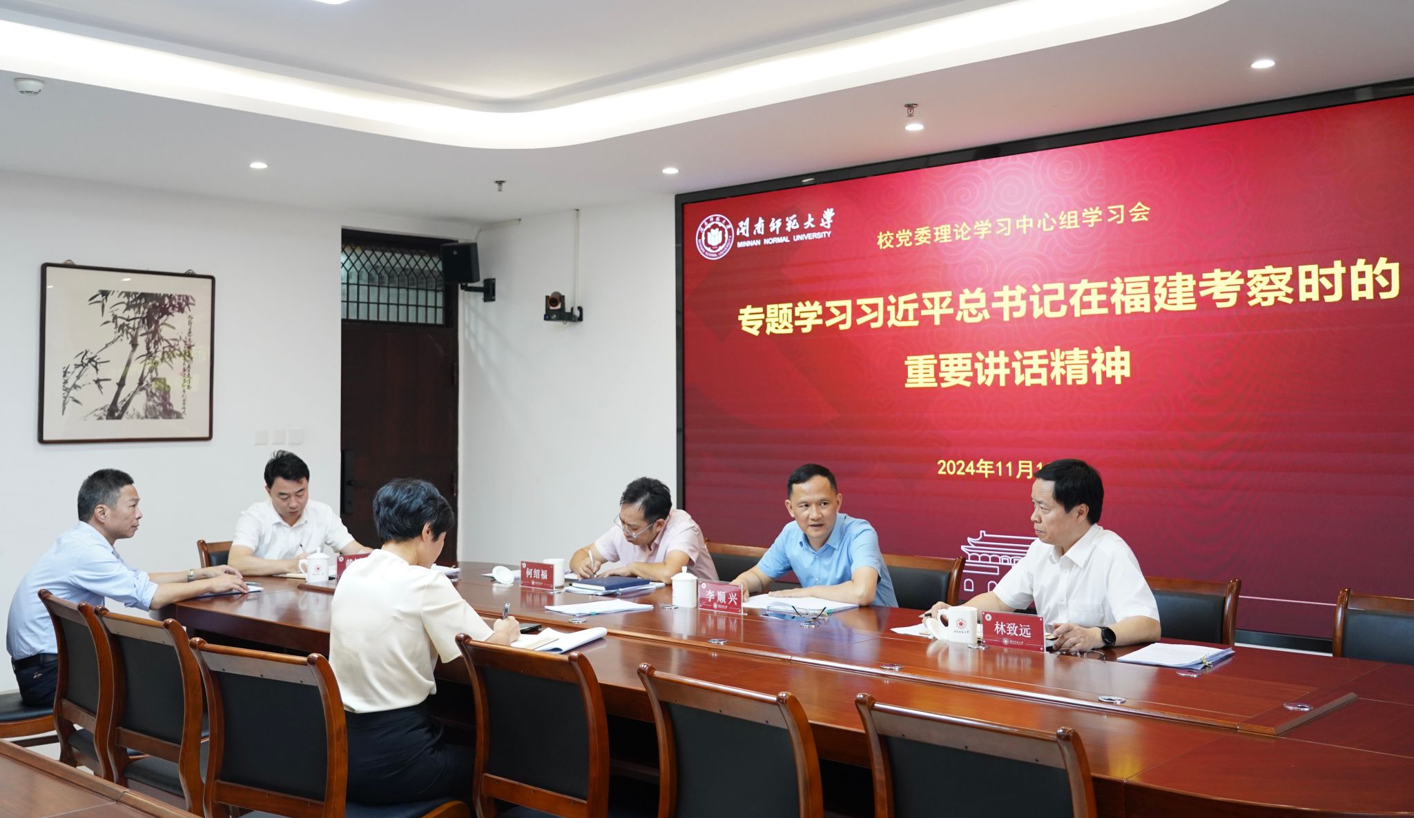 11月13日下午,校党委理论学习中心组召开学习会,专题学习习近平总书记在福建考察、在安徽考察、在中共中央政治局第十七次集体学习时的重要讲话精神,围绕“深入学习贯彻习近平总书记重要讲话精神,在推进中国式现代化中彰显高校担当”专题进行集体研讨。校领导李顺兴、林致远、何绍福、戴福康分别结合工作实际作重点发言。会议由校党委书记、校长李顺兴主持。