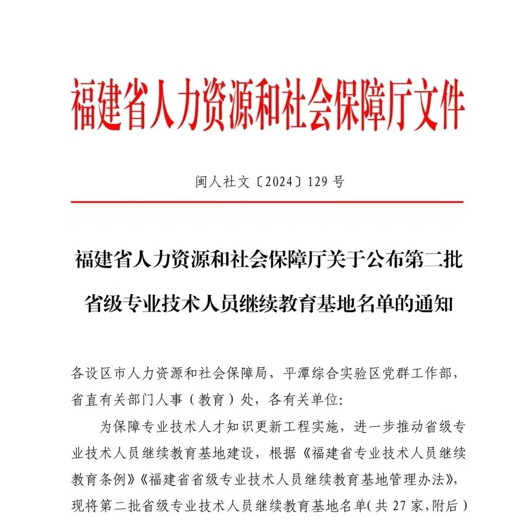 近日,福建省人力资源和社会保障厅公布第二批省级专业技术人员继续教育基地名单,登录入口成功入选。此次认定工作由省人社厅组织,经推荐申报、复核、实地考察、综合评议等环节,共遴选出27家单位。