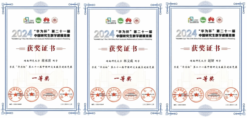 近日,“华为杯”第二十一届中国研究生数学建模竞赛落下帷幕。经过激烈角逐,计算机学院研究生蒋承熹、赵妍、林文成组成的团队在指导教师赵红的指导下,荣获全国一等奖。