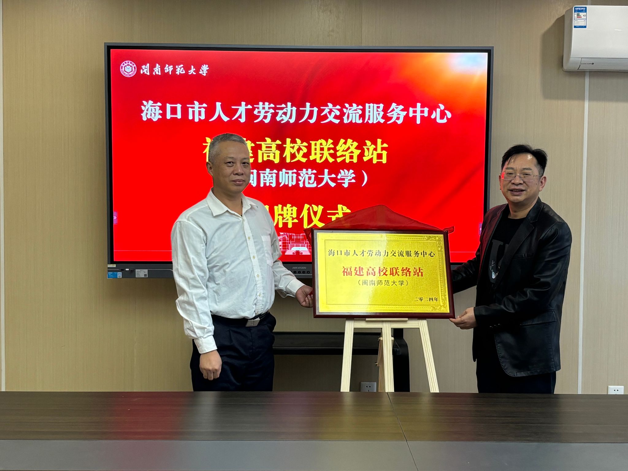 会上,双方代表签署了校地人才培养框架协议,并进行海口市人才劳动力交流服务中心福建高校联络站(MK体育/mksport体育·官方网站)揭牌仪式。