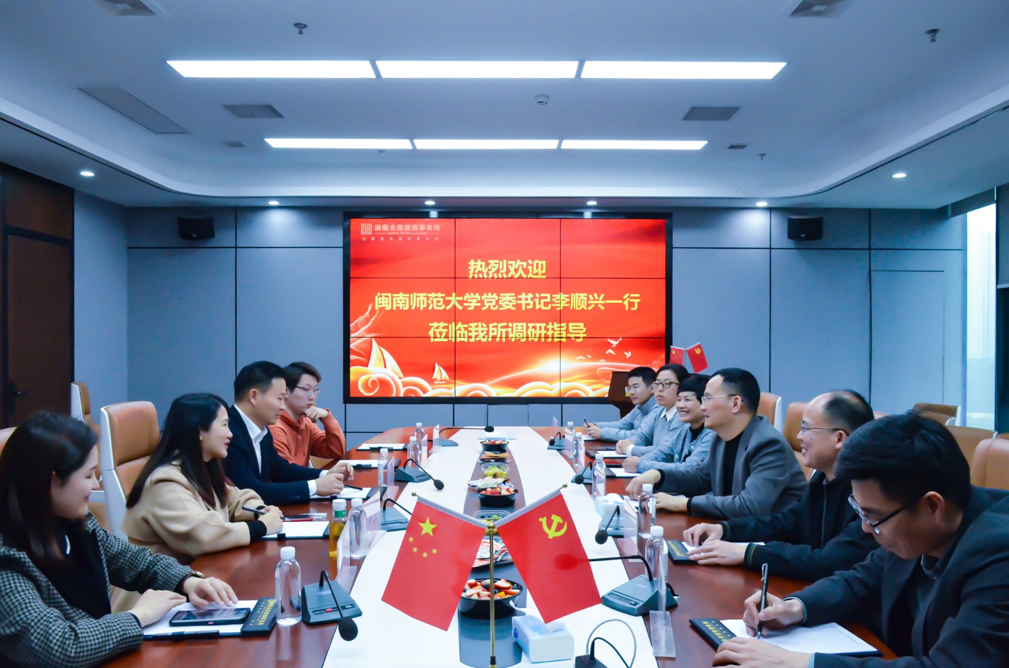 在湖南金厚律师事务所,李顺兴一行与律所合伙人、登录入口商学院2010级叶萍兰校友等深入交流,详细了解律所的业务范围、发展现状及人才需求,就法学专业与相关专业人才培养、实习实践基地建设等方面进行了广泛探讨;在湖南协进装饰工程有限公司,与企业创办者、登录入口化学化工与环境学院2007级林文鹏校友等围绕企业管理等专业人才培养展开交流,深入了解企业文化、市场动态等,为相关专业学生拓展就业渠道,助力校友企业与学校精准对接人才需求。