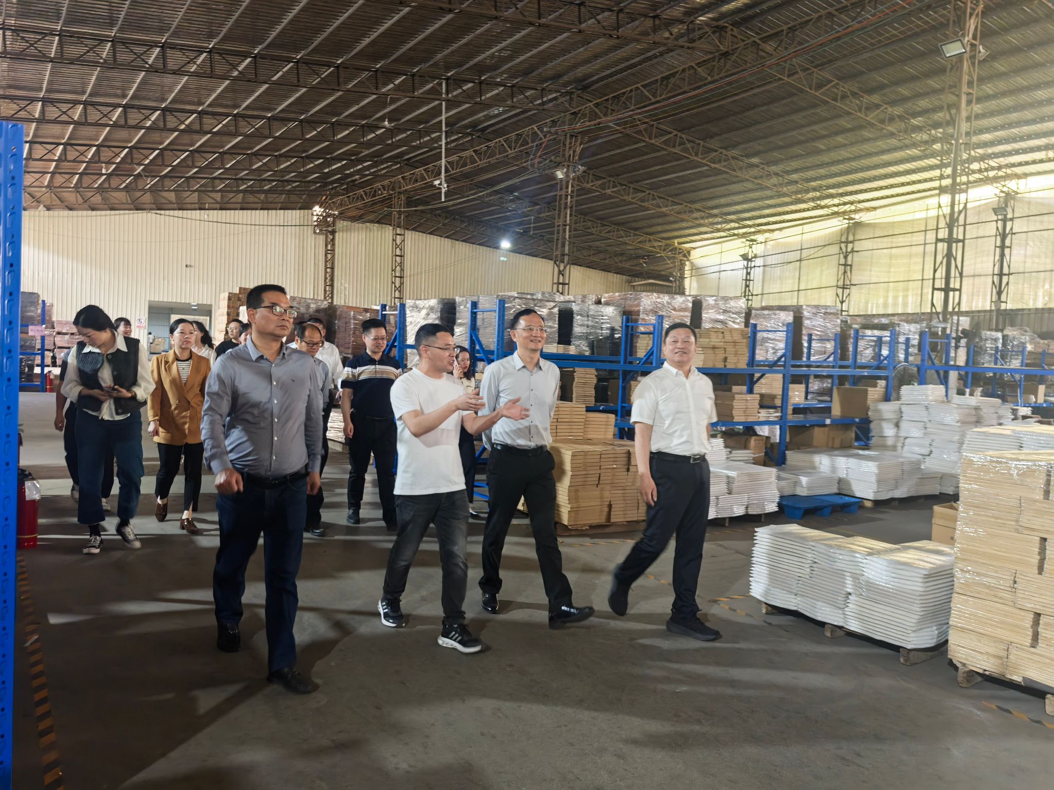 ▲李顺兴一行参观福建金竹竹业有限公司